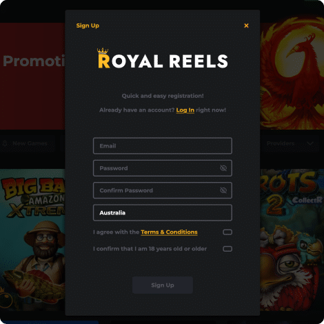 Hit the “Sign Up” button on the Royal Reels website